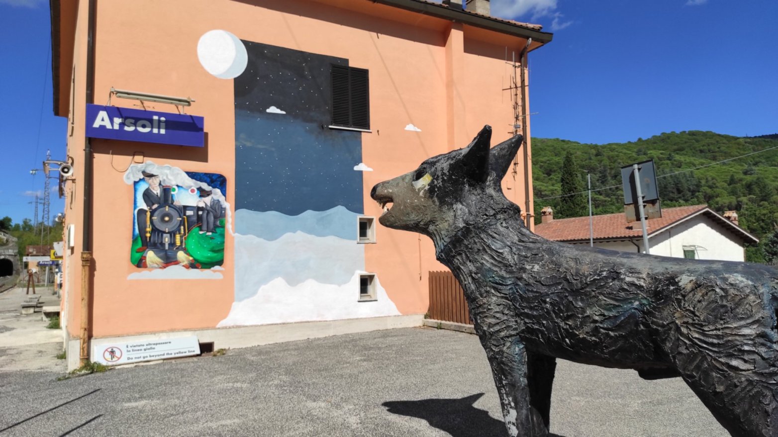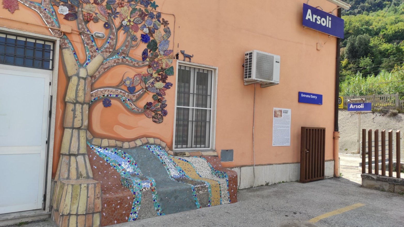 ARSOLI – Con l’intervento del progetto StazionArti, la stazione ferroviaria di Arsoli è indubbiamente la piu’ bella e suggestiva di tutta la linea Roma Pescara. Intrisa di murales, cultura, realizzazioni che restano nel tempo e che regalano un fascino del tutto particolare. Iniziando dal capostazione, che ormai nelle stazioni minori è solo un lontano ricordo. Eppure con l’estro degli artisti che hanno realizzato questo progetto, il capostazione c’è, in ferro ed anzi ce ne sono due. In maniera tale da assicurare una certa continuità. Il fascino della stazione di Arsoli si osserva sin dall’arrivo nel piazzale, un sedile a mosaico che accoglie e rende tutto già suggestivo. Poi spazio a murales ed opere scultoree stupende. Si tratta di un viaggio diverso quello alla stazione, che va osservato ed apprezzato con attenzione e con tutta calma.