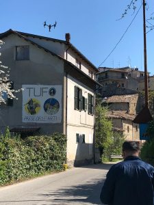 Tufo di Carsoli – Sono in corso interventi di alta tecnologia nella frazione Tufo di Carsoli che come è noto è protagonista dell’arte. Molte infatti sono le caratteristiche di questo borgo che offrono ai residenti e visitatori. E il drone professionale ha sfrecciato nel cielo azzurro per catturare l’arte già realizzata con i murales di “Intonaci”, l’ormai noto progetto che vede protagonisti gli “Artisti della Valle del Cavaliere”. laroccasolutions, società leader nella tecnologia avanzata unitamente allo Studio Fotografico Pantalone, ha dunque iniziato la sperimentazione dall’alto al fine di monitorare le opere attraverso un sistema avanzato di geolocalizzazione. Tutto in vista della imminente edizione per la quale – spiega Maurizio La Rocca – stiamo lavorando sul settore tecnologico e della comunicazione con sorprese che caratterizzeranno questo interessante percorso.