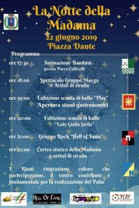 Castel Madama – Grande attesa in Valle Aniene per l’appuntamento di Sabato 22 giugno 2019 con “La Notte della Madama”. In Piazza Dante una serie di spettacoli dedicati ai più piccoli ma anche alla danza, con stand gastronomici per una estate tutta da vivere nel bellissimo borgo della Valle Aniene.