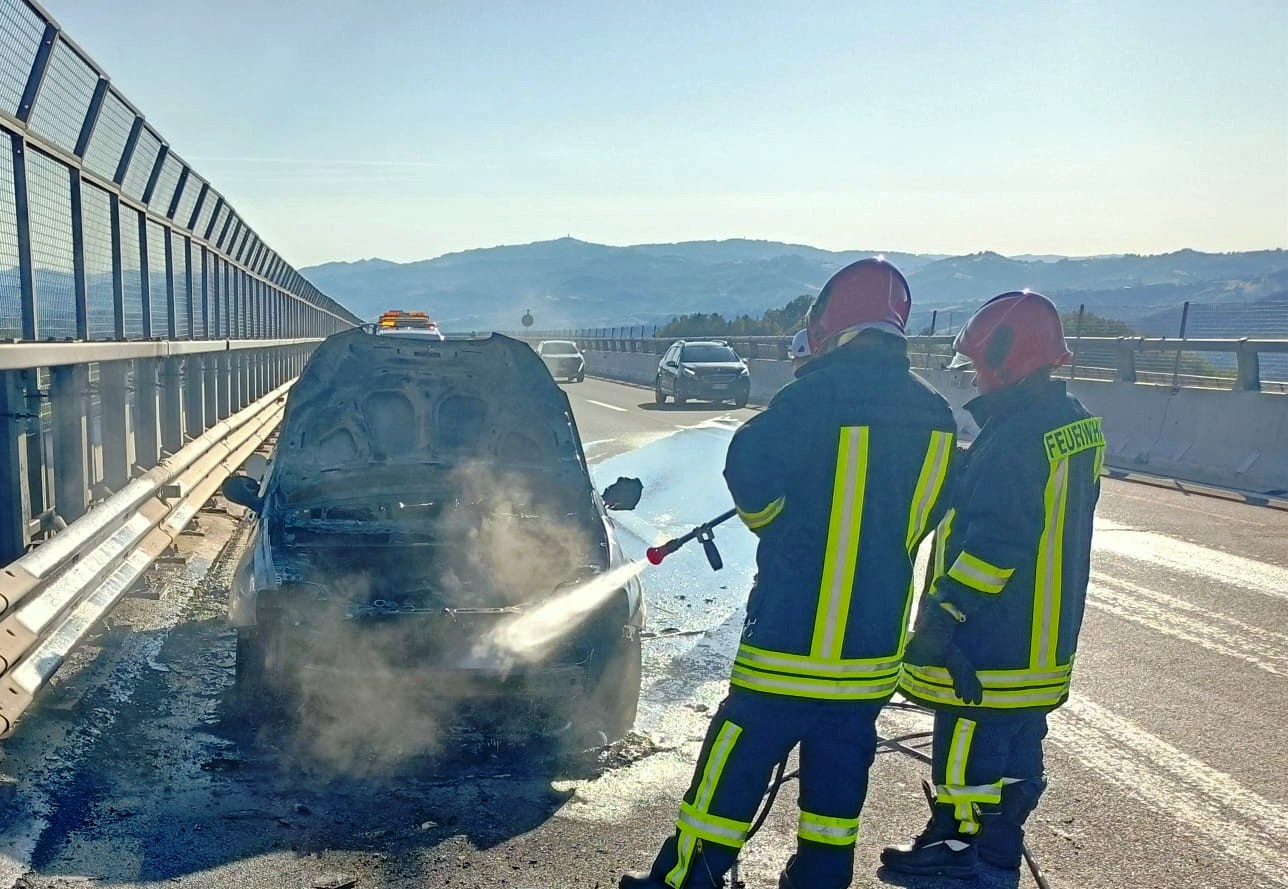 Auto a metano prende fuoco sul viadotto Cerchiara in A24, i vigili del Fuoco evitano il peggio!