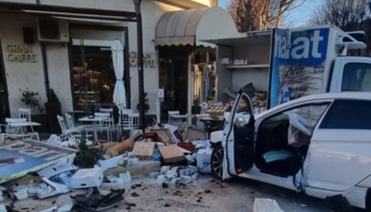 Auto impazzita nel centro di Avezzano distrugge il furgone del latte. Paura davanti al bar.