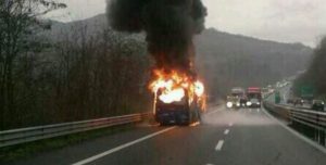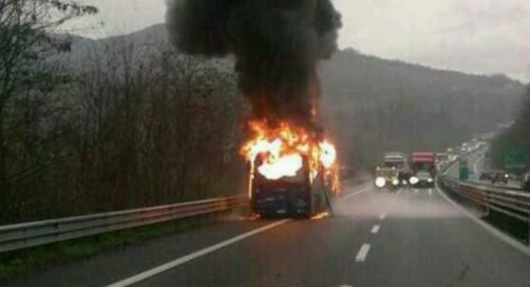 Autobus in fiamme sulla A24, traffico bloccato tra Vicovaro e Carsoli