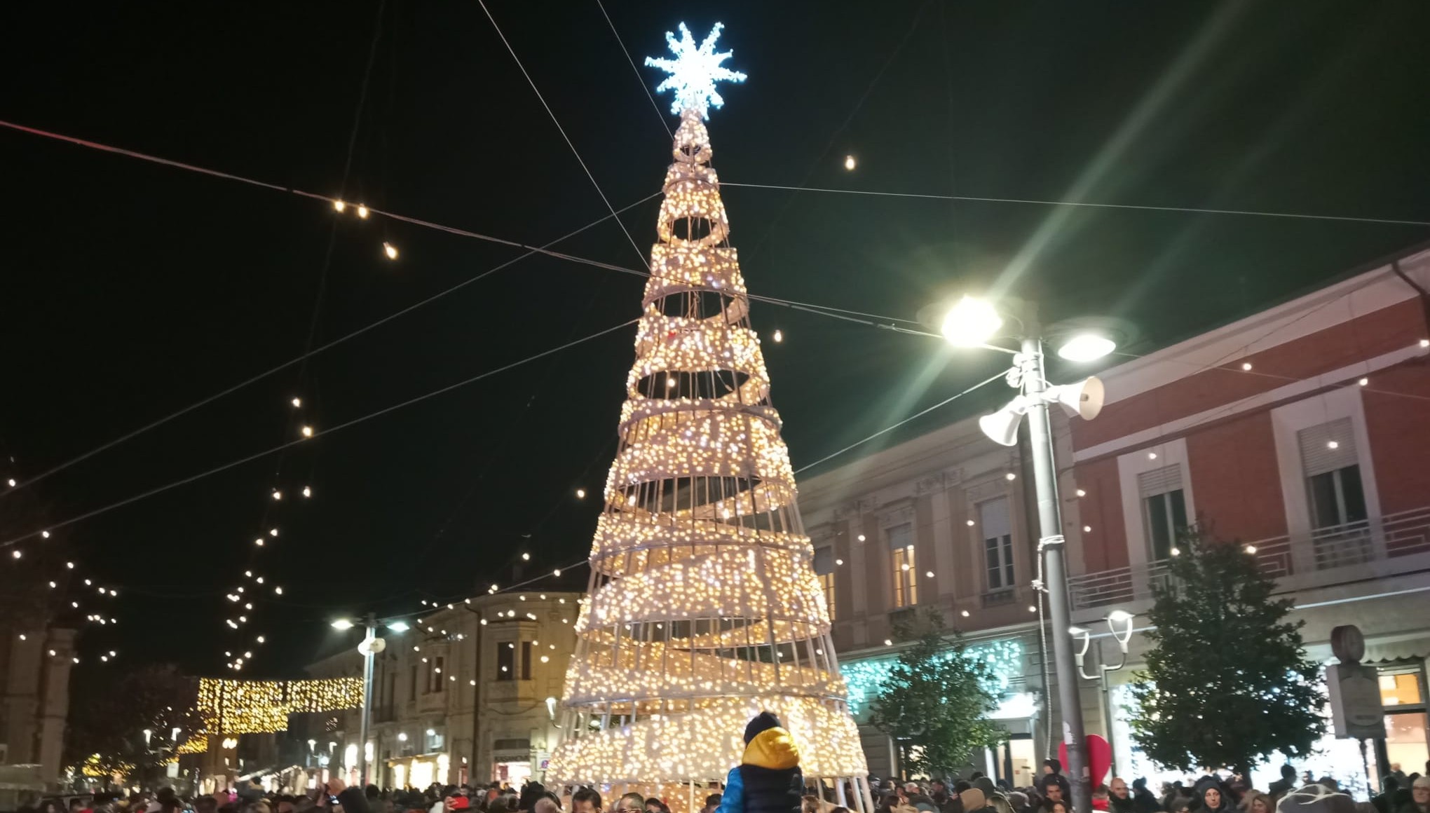 Avezzano. Avezzano accende il Natale: folla in festa per l’albero, la stella cometa e il cielo stellato.