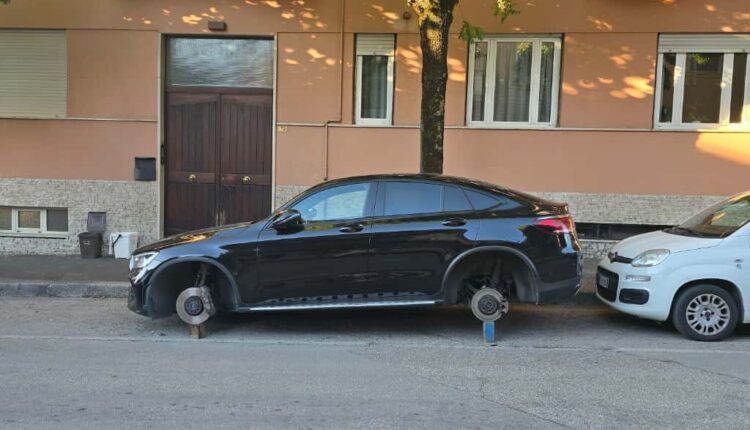 Durante la notte, ignoti hanno smontato e rubato tutte le ruote, lasciando le auto nello stesso punto in cui erano state parcheggiate il giorno prima.