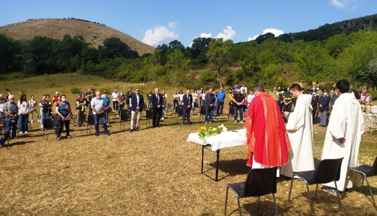 Avezzano (L’Aquila) – Sullo sfondo il monte Velino, nel piazzale del rifugio Casale da Monte, “una messa per la vita”, ha ricordato don Adriano Principe, all’inizio dell’omelia religiosa, in quella valle incantata, davanti ad alcune decine di persone, famiglie, amministratori, rappresentanti della macchina dei soccorsi, forze dell’ordine e volontari, “per tutti quelli che vanno in montagna e per la sicurezza”.