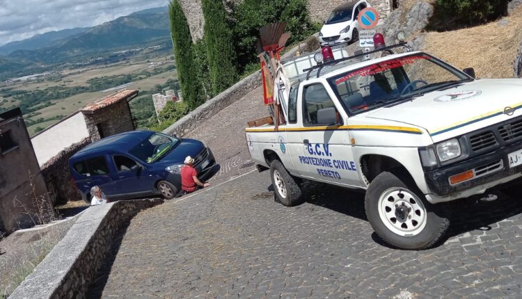 Azzarda manovra nel centro storico di Pereto, interviene la Protezione Civile