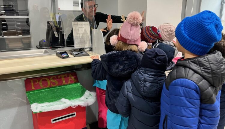 Bambini vanno alla posta per spedire lettere a Babbo Natale