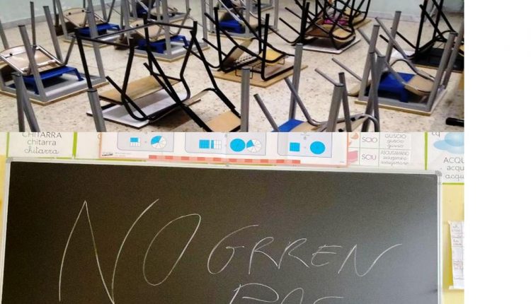 Carsoli – Proseguono a tutto campo le indagini rispetto a quanto accaduto nei giorni scorsi nottetempo presso l’edificio della scuola primaria “Carlo Scarcella” di Carsoli. Ignoti si sono introdotti nell’interno della scuola, e nel corso dell’irruzione è stata danneggiata la stampante, creato uno sbarramento di banchi nel corridoio centrale e soprattutto l’ azione è stata quella di aver messo tutti i banchi ordinatamente sottosopra in una aula, nella cui lavagna è comparsa la scritta “No grren Pass” con l’ausilio dei gessetti.