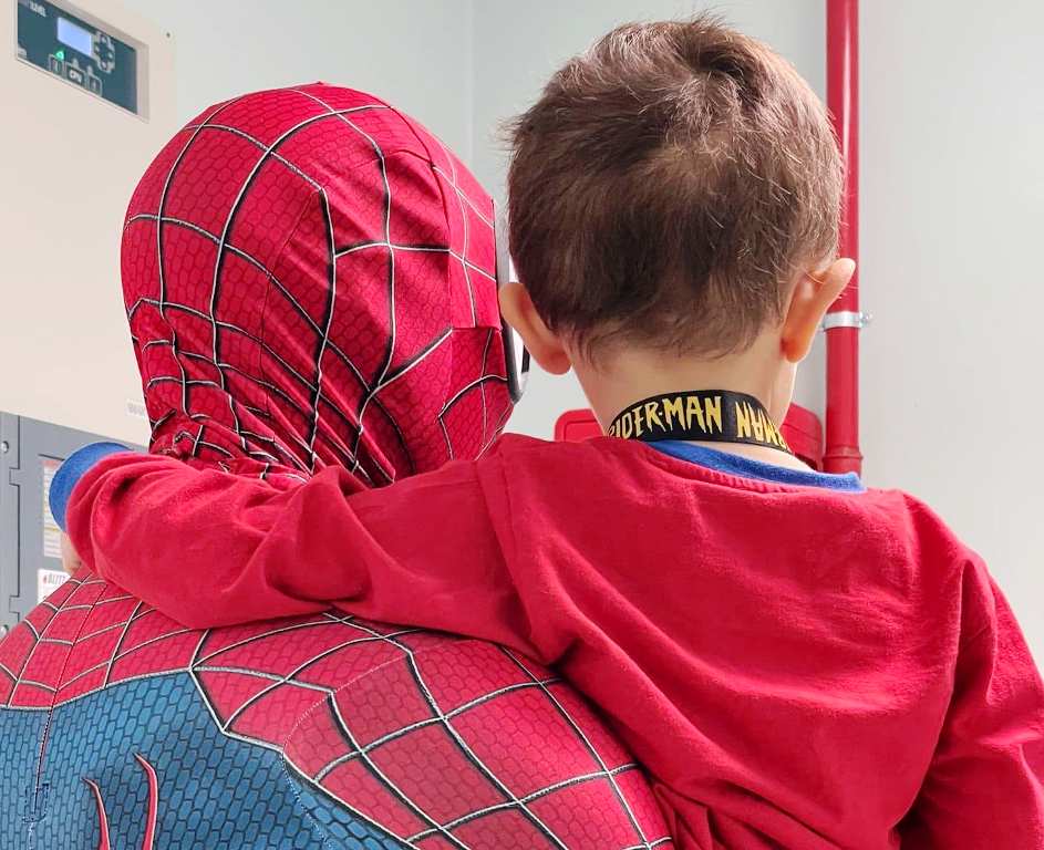 Bimbo operato di tumore renale riceve la visita di “Spiderman” al Policlinico Umberto I° di Roma