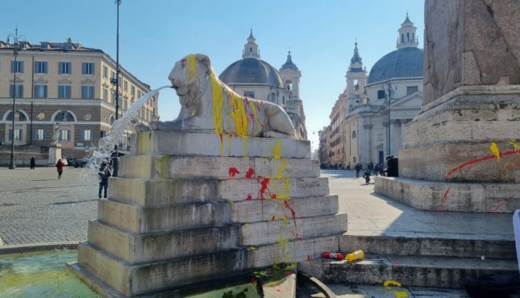 Blitz animalista a Roma: imbrattata con la vernice la fontana di piazza del Popolo