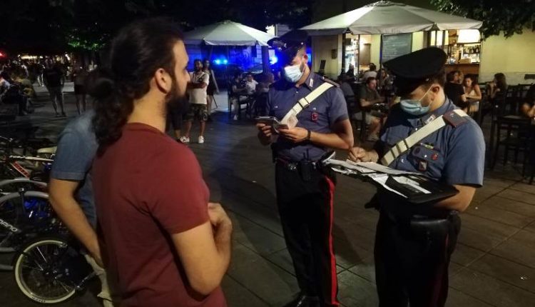 I Carabinieri durante il sabato notte hanno rilevato numerose infrazioni, come assembramenti e mancato rispetto dei dispositivi di protezione alla respirazione naso-bocca.