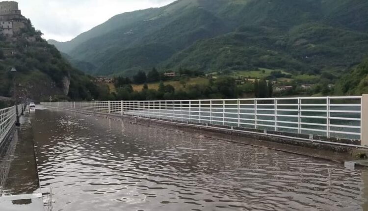 Bomba d’acqua nella Valle del Turano, allagato il ponte di Castel di Tora