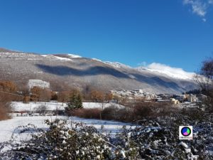 Camerata Nuova – La nevicata di ieri ha reso ancorpiù affascinante il territorio di confine tra Lazio e Abruzzo. Siamo andati alla ricerca di perle incastonate nella natura. E così passando da Rocca di Botte il confine di provincia tra L’Aquila e Roma passa le consegne a Camerata Nuova, un piccolo ed affascinante borgo reso oggi ancorpiù bello dal manto nevoso che accarezza i tetti e le montagne circostanti. Camerata Nuova è una realtà ricca di storia, ed il suo nome Camerata (Cammorata in vernacolo) era riferito secondo le ricerche storiche poichè le abitazioni erano anticamente costituite da vere e proprie camere ricavate nella roccia. Di qui la storia ci riporta a Camerata Vecchia che venne distrutta da un incendio.  Le sue rovine sono oggi, una meta affascinante per escursioni tra storia e natura ad oltre 1.200 metri di altezza.  Oggi questa terra di confine tra Lazio e Abruzzo lascia apprezzare Camerata Nuova in un paesaggio montano incontaminato, fatto di splendide vallate e folti boschi che si aprono su sconfinati altipiani la cui bellezza selvaggia li ha resi scenario dei più famosi spaghetti-western. Un borgo “nuovo”, che venne completamente ricostruito, a valle di Camerata Vecchia, ma le tradizioni e la cultura nel tempo sono comunque rimaste inalterate. La strada che conduce a Camerata lascia sin da subito intravedere delle bellezze naturali non comuni, e quando si scorge il borgo, con il campanile che domina e fa da corona ai tetti delle case si viene catturati dal fascino. Silenzio, candore, pace. Oggi il manto nevoso sembra voler collegare le montagne affascinanti con il borgo di Camerata Nuova, che offre la sua tradizionale e proverbiale accoglienza. Il cielo azzurro rende ancora più suggestivo un quadro che vale la pena di essere vissuto.