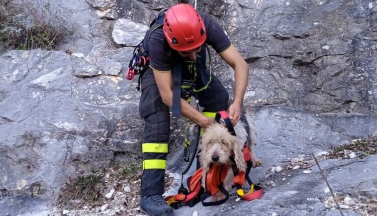 Cagnolino precipita da un dirupo ad alta quota, recuperato dai vigili del fuoco