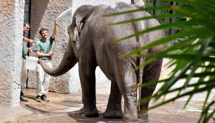 Docce rinfrescanti per l’elefante asiatico Sofia, che ha a disposizione anche un’ampia vasca da bagno dove si immerge spesso.