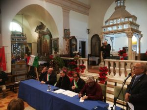 l’intervento del prof. Enzo D’Urbano il quale ha posto l’accento in maniera umile e semplicistica sul profondo significato di questo cammino autentico e con radici storiche culturali di fede e fratellanza. “Intorno a questo Cammino costruiremo molte cose – ha concluso ricordando la figura della compianta Flaminia Pasqualoni, donna di elette virtù che tanto ebbe a profondere come impegno per il bene della comunità di Rocca di Botte. Presente anche Giuseppe Di Pangrazio, presidente del Consiglio regionale d’Abruzzo, il consigliere Provinciale Alfonso Scamolla, i sindaci di Carsoli Velia Nazzarro con il Presidente del Consiglio Lorenza Muzi, i sindaci Settimio Liberati (Camerata Nuova), Beatrice Sforza (Vivaro Romano), Maria Pia Mercuri (Collalto Sabino), Giancarlo Palma (Riofreddo), Marco Lelli (vice sindaco di Cervara di Roma), autorità militari ed altri rappresentanti di associazioni e gruppi. Successivamente al convegno si è svolta la celebrazione liturgica nella medesima Chiesa di San Pietro Eremita in un clima di fede e raccoglimento.