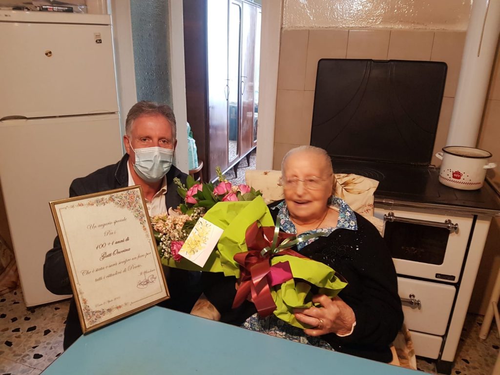 Pereto – Grande festa virtuale a Pereto per i 101 anni di nonna Onorina Gatti Iadeluca. Con tanto affetto la comunità gli ha voluto dedicare un camper itinerante con uno striscione che annuncia l’evento augurale. Lo scorso anno, in pieno lockdown non fu possibile festeggiare, nemmeno quest’anno, cosicchè il sindaco Giacinto Sciò si è recato a casa della ultracentenaria che lo ha accolto con commossa lucidità. Una nuova targa dunque per questo importante traguardo.