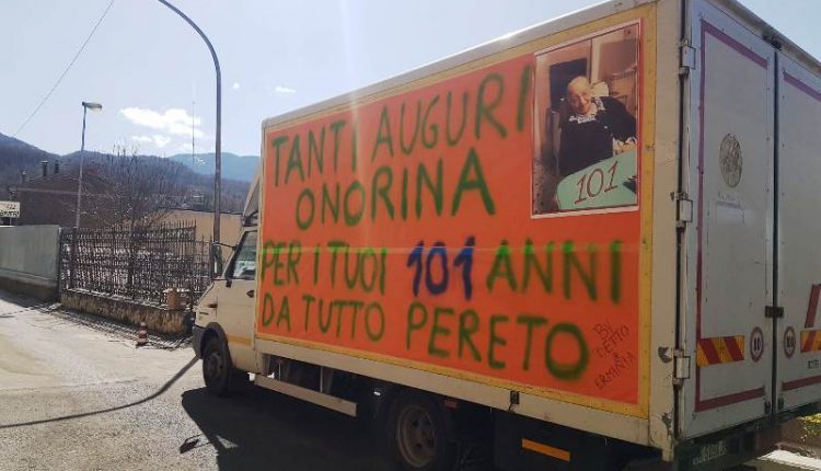 Pereto – Grande festa virtuale a Pereto per i 101 anni di nonna Onorina Gatti Iadeluca. Con tanto affetto la comunità gli ha voluto dedicare un camper itinerante con uno striscione che annuncia l’evento augurale. Lo scorso anno, in pieno lockdown non fu possibile festeggiare, nemmeno quest’anno, cosicchè il sindaco Giacinto Sciò si è recato a casa della ultracentenaria che lo ha accolto con commossa lucidità. Una nuova targa dunque per questo importante traguardo.