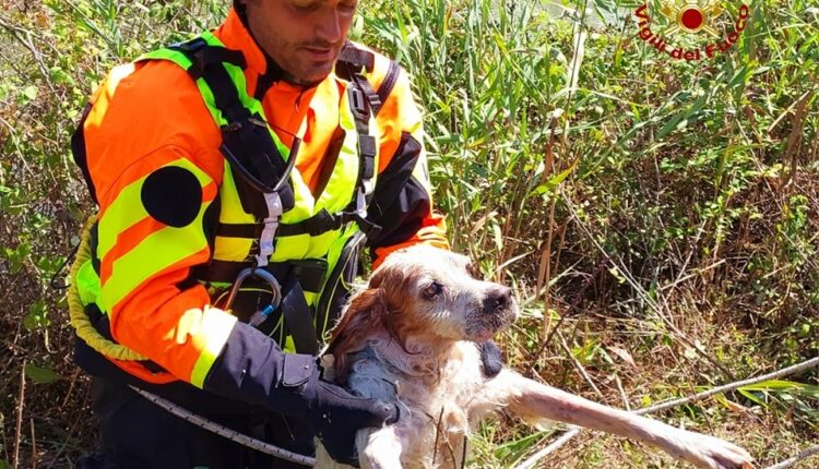 Cane finisce in un canale, i Vigili del Fuoco lo salvano dall’annegamento