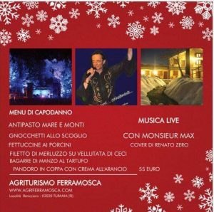 Pubbliredazionale – Ed ecco il format di Capodanno che l’Agriturismo Ferramosca di Turania ha voluto riservare per festeggiare in amicizia e convivialità l’arrivo del nuovo anno 2019. Un menù di gusto gourmet, musica in live nella suggestiva cornice del noto Agriturismo che offre anche la possibilità di pernottare nell’adiacente B&B. Monsieur Max allieterà la serata con brani magistralmente eseguiti in cover del grande artista Renato Zero. Dunque una serata scintillante.