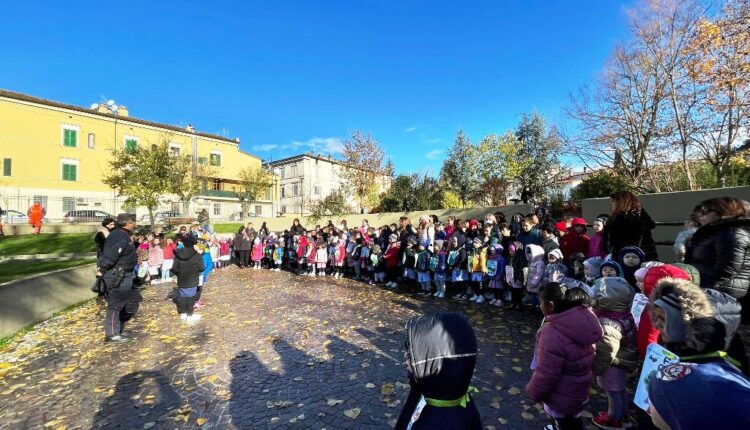 CARSOLI – In un clima di grande entusiasmo è stata celebrata questa mattina presso i Giardini Pubblici la giornata nazionale degli alberi. Protagonisti i bambini della scuola per l’Infanzia che dalla sede di via Genova in corteo hanno raggiunto gli spazi verdi per procedere ad una piantumazione di nuovi alberi simbolica. L’organizzazione è stata curata dai Carabinieri forestali, presente anche l’assessore al decoro urbano del comune di Carsoli Federica Arcangeli. I bimbi avevano preparato con l’assistenza delle insegnanti disegni sul filo conduttore degli alberi che portavano con dei cordoncini a collo.