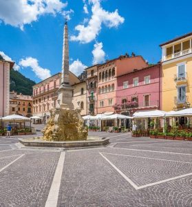Dopo Carseoli la via attraversa un percorso montano poco trafficato oggi e giunge attraverso Colli di Monte Bove all’abitato di Tagliacozzo, che ha origini medievali ed è sorto attorno ad un punto strategico dove passava proprio della via Valeria.