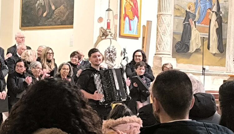 Carsoli, al concerto di Natale Matteo di Paolantonio incanta tutti con la fisarmonica diatonica