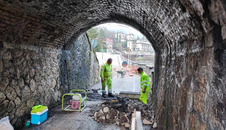 CARSOLI – Sono in corso interventi di ripristino in sicurezza del fondo stradale deteriorato e regimentazione delle acque presso il piccolo ponte ferroviario che da via Roma collega via degli Alpini. Al momento e fino al termine dei lavori che dovrebbero concludersi in due giorni, è pertanto stata disposta dal comune di Carsoli l’interdizione al transito veicolare e pedonale. Il centro cittadino è raggiungibile a livello automobilistico dagli ingressi di via Roma e da via L’Aquila, mentre i pedoni che devono recarsi in centro possono percorrere via della Pompa pista ciclabile arrivando fino al ponte di legno che arriva  su Piazza Marconi, e sia attraverso il ponte di via Prato La Terra che arriva direttamente su via L’Aquila.