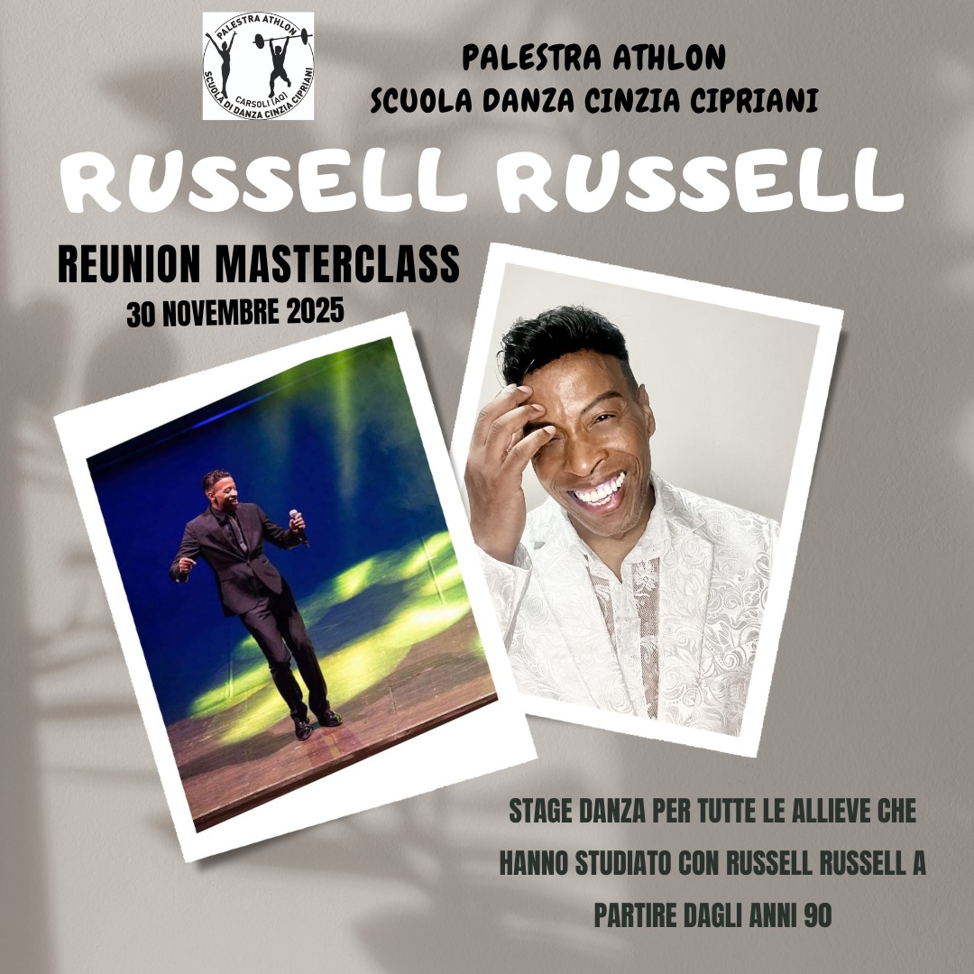 Domenica 30 novembre 2025 – Danza moderna con Russell Russell: energia, creatività e movimento in continua trasformazione.