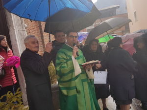 Carsoli – Si è svolta nella mattinata odierna in Piazza Corradino la tradizionale benedizione degli animali in occasione della ricorrenza del 17 gennaio (Sant’Antonio), per questioni di praticità la Parrocchia rinvia l’evento alla prima domenica successiva per consentire a tutti di poter partecipare. E anche se le condizioni meteo non erano delle più favorevoli, la presenza c’è stata ed alquanto significativa. Cavalli stupendi, cani di ogni dimensione, e perfino anatre, gatti, conigli ed altre tipologie di questi esseri viventi che da sempre sono veri amici leali ed alleati dell’uomo. Dopo la S. Messa delle 11 il parroco don Roberto Cristofaro riparato dai fedeli per la pioggia battente ha proceduto alla benedizione di rito, come vuole la tradizione e come vuole la fede.
