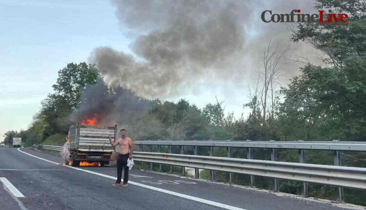 Carsoli, paura su A24 camion prende improvvisamente fuoco, conducente salvo per miracolo
