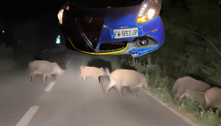 Carsoli, branco di cinghiali le attraversa la strada: donna salva per miracolo!
