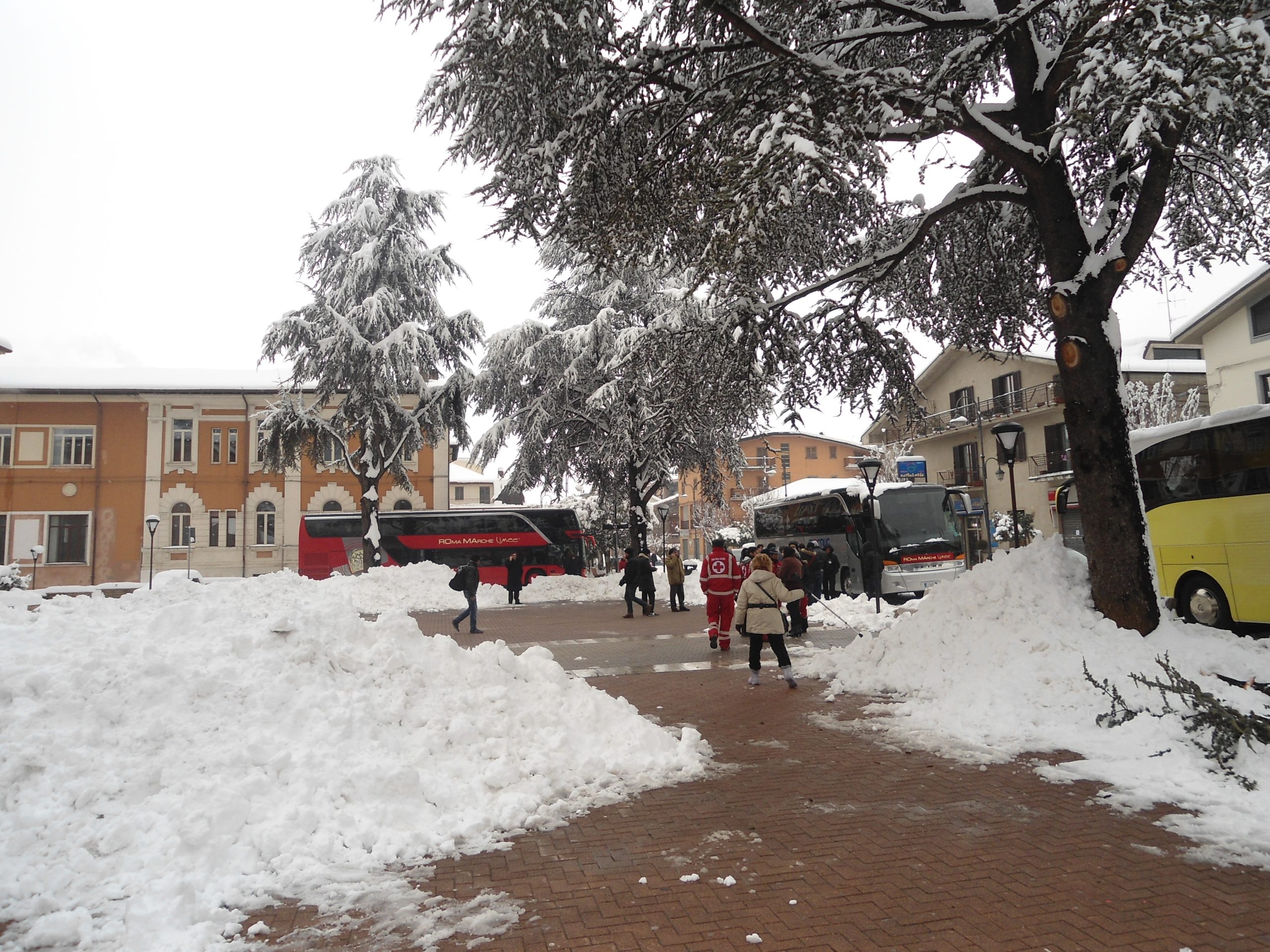 Vennero aperti tutti gli uffici, si ricordano due persone disperate che dormivano sulla scrivania del Sindaco, gente ovunque, nei corridoi e con i bagni in cui non c’era nemmeno l’acqua in quanto gelata. Perfino le scuole elementari vennero aperte, e ricordo la grande disponibilità di Carlo Penna (C’era una volta) che accettò subito il nostro invito a venire ad aprire la Pizzeria Bar, per poter dare qualcosa di caldo alle persone, e quindi si organizzò un servizio razionato di pizza e bevande calde che diede una boccata di ossigeno a molte persone. Alcuni erano in preda al nervosismo, e se la prendevano con le istituzioni, ma c’è stata anche una grande gara di solidarietà, con persone che si sono messe ad aiutare insieme a noi. Fu una lunga notte, in cui chi scrive ricorda di aver sentito molte storie di vita da tutti coloro che erano in viaggio. Al mattino presto venne allestita la mensa nella scuola elementare coordinata dalla Croce Rossa, e un innumerevole numero di pasti venne somministrato agli automobilisti bloccati a Carsoli. Fu quella la notte, in cui una artista rimasta bloccata, non ritenendo la scuola elementare Carlo Scarcella un hotel cinquestelle, ebbe a criticare l’accoglienza nella tv nazionale nei giorni seguenti, con una forte reazione della comunità indignata. Ma tornando al mattino, la task force era tutt’altro che finita, iniziavano ad arrivare richieste di aiuto dalle frazioni, bloccate.