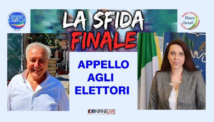 E così questa sera i candidati sindaco delle Liste in competizione: Domenico D’Antonio (Unione Civica per Carsoli) e Velia Nazzarro (Vivere Carsoli) lanceranno un ultimo appello agli elettori. La sfida finale dunque è ormai tutta da giocare all’interno e nel segreto delle urne.