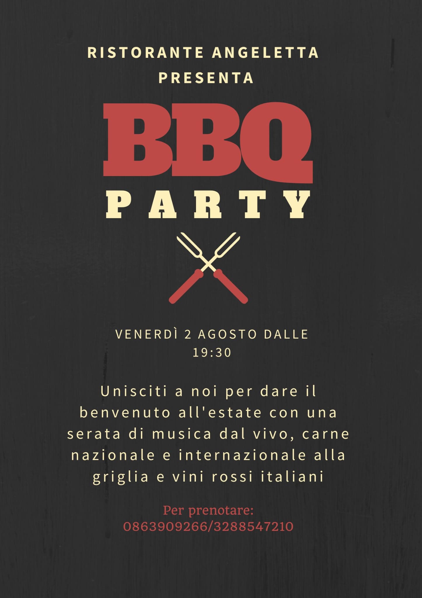 Il BBQ Party si preannuncia una sorprendente occasione di convivialità, per stare insieme al fresco di sera degustare selezioni di prestigiose e scelte carni di selezione nazionale ed internazionale alle quali si abbinano vini rigorosamente rossi per l’occasione prodotti da migliori aziende vitivinicole italiane.