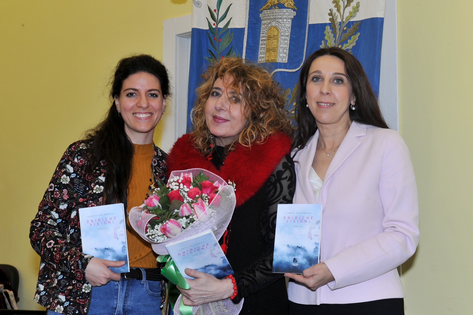 Carsoli – Davanti a un pubblico emozionato e molto partecipe si è svolta, nel pomeriggio di sabato 1 aprile, la presentazione della seconda raccolta poetica di Ilaria Colangeli. Con le sue “Oniriche visioni” ha riscosso un successo clamoroso nella Sala consiliare del comune di Carsoli. Ad affiancare l’autrice in questo bellissimo appuntamento letterario c’erano la sindaca Velia Nazzarro, l’editore Armando Iadeluca (Il Cuscino Di Stelle) e la giornalista Elisabetta Zazza, moderatrice dell’evento.
