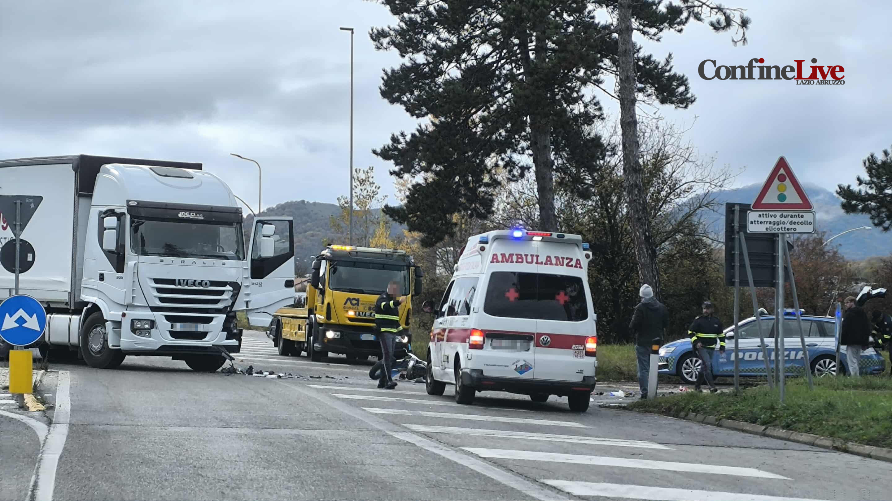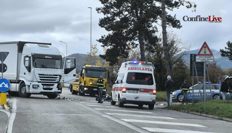 CARSOLI – Un grave incidente si è verificato poco fa sulla SS.5 quater Tiburtina Valeria nei pressi dello svincolo autostradale di Carsoli Oricola. Coinvolto un Tir in immissione verso l’autostrada A24 ed un centauro che viaggiava sulla Tiburtina. Violento l’impatto, la moto si è schiantata sull’asfalto distrutta. Sul posto tempestivi i soccorsi del 118 di Carsoli che hanno trasportato il conducente della moto di 38 anni, ferito seriamente ad una gamba, presso l’Ospedale San Salvatore dell’Aquila in codice rosso. Il ragazzo ferito è di una frazione di Carsoli. Sta Illeso il conducente del Tir. La Polizia Stradale di Carsoli è intervenuta sia per i rilievi di rito al fine di stabilire la dinamica dell’incidente e sia per disciplinare il traffico che è rimasto bloccato nella carreggiata in direzione di Roma, ma disposto in senso alternato.