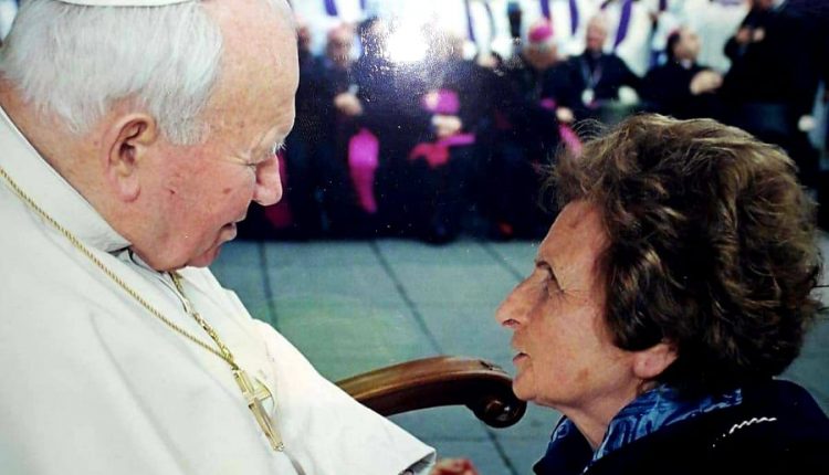 La ricordiamo con questa immagine storica, in un colloquio che ebbe direttamente con San Giovanni Paolo II durante lo svolgimento di un sinodo con Cardinali e Vescovi presso la Città del Vaticano.