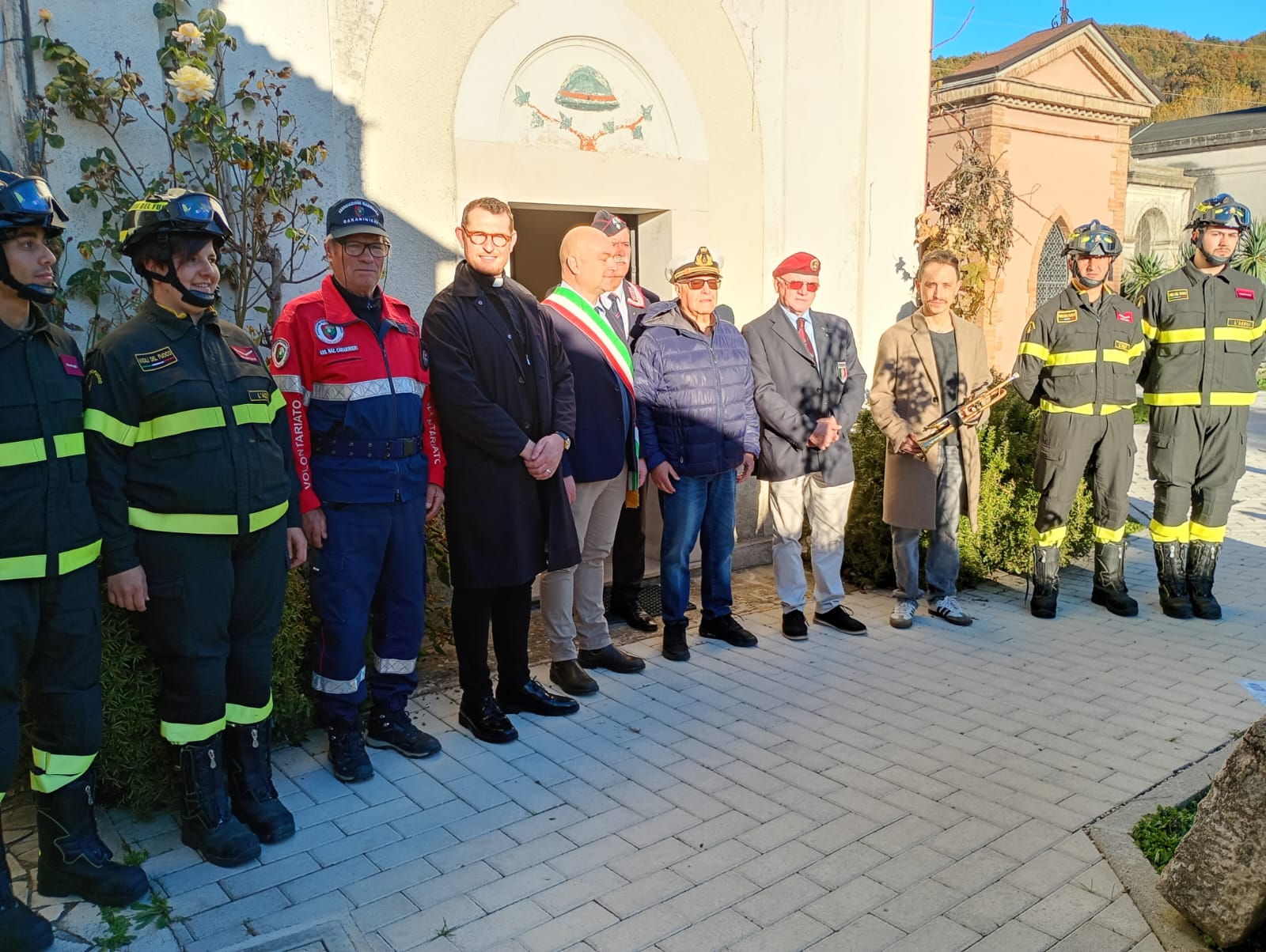 Carsoli Aq – Come di consueto breve cerimonia presso la cappella dei Caduti nel cimitero comunale di Carsoli. Presenti le associazioni combattentistiche e d’arma, Associazione nazionale Carabinieri, Vigili del Fuoco, Assoarma, Marina, il sindaco Alessandro Marcangeli, il parroco don Umberto Di Pasquale, rappresentanti gruppi di volontariato locale.
