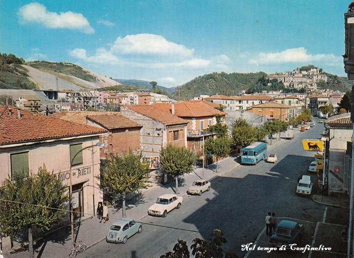nella foto sottostante invece correva l’anno 1968…. ed al fianco della Cassa di Risparmio di Rieti (ove ha sede l’attuale Antho Bistrot), c’era il cinema Valeria di proprietà della famiglia Gucci di Tagliacozzo.