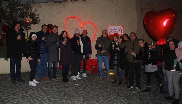 Castel Gandolfo – E’ stata inaugurata sabato sera a Castel Gandolfo la “Piazzetta degli Innamorati” in piazza Cavallotti, nel Borgo Antico, con annessa balconata che affaccia sullo specchio lacustre, panchina contornata di rosso, un grande cuore rosso luminoso e tavolino per brindare con tante rose rosse.