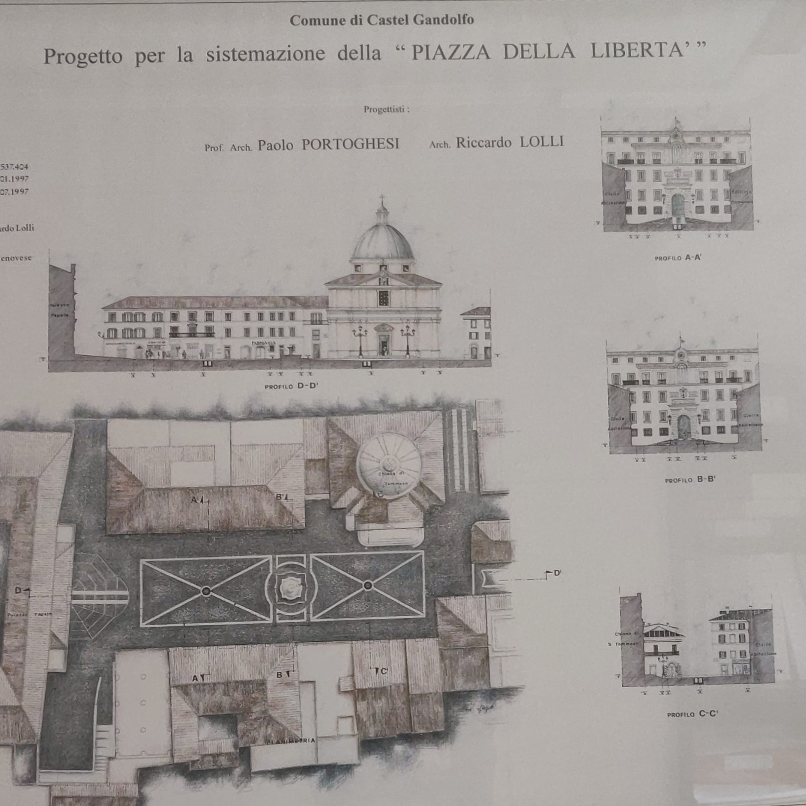 In foto lo Studio di riqualificazione ambientale e architettonica del centro storico commissionato dal Comune di Castel Gandolfo tra gli anni 1993 e il 1996. L’architetto Paolo Portoghesi ne seguì il progetto e la direzione lavori insieme all’Architetto con Riccardo Lolli.