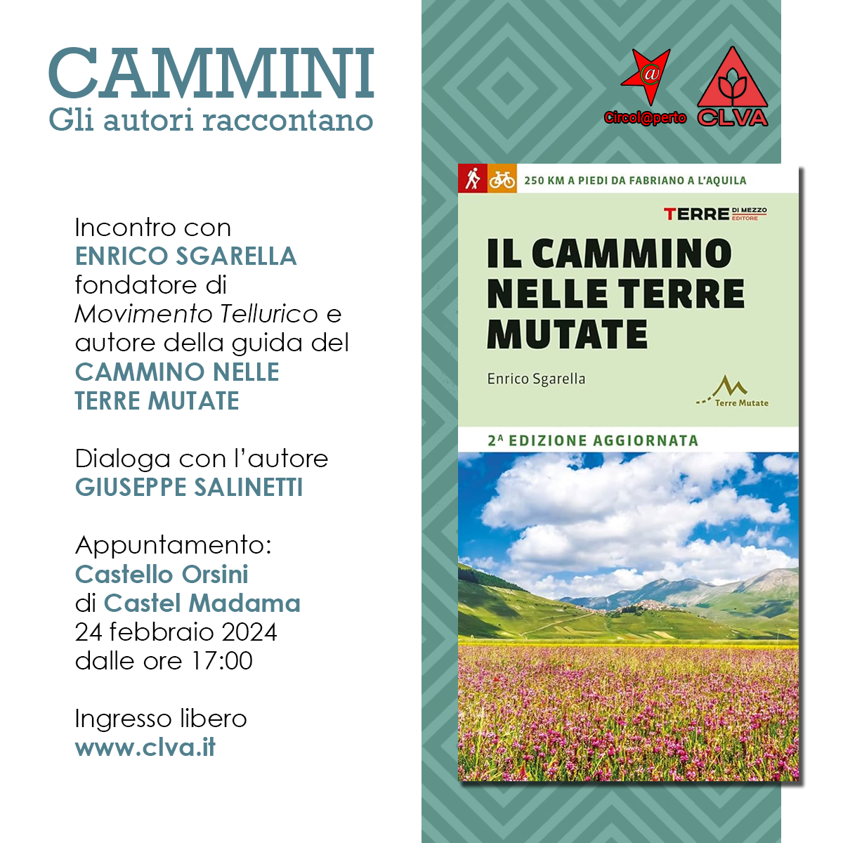 CASTEL MADAMA – Sabato 24 febbraio 2024 terzo appuntamento della rassegna letteraria “Cammini” con il Cammino nelle terre mutate. Sarà presente  Enrico Sgarella, autore della guida ufficiale.