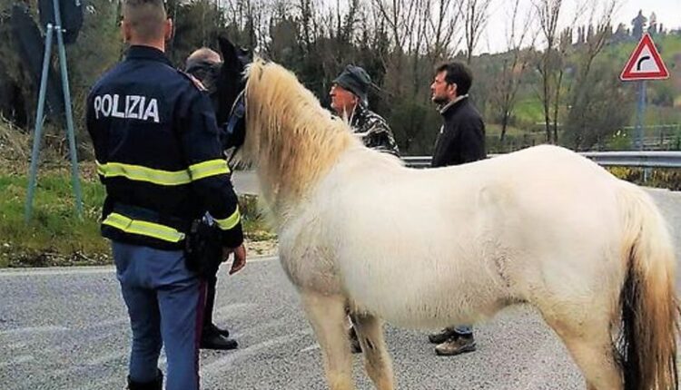 TERNI – Se non fosse che metteva in pericolo l’incolumità degli automobilisti e la propria, era proprio bello da vedere il cavallo bianco che nella giornata di ieri trottava quasi indisturbato sulla strada statale 675 in direzione Orte, creando turbativa alla circolazione. E’ stato richiesto l’intervento della Polizia di Stato per evitare il peggio su una strada che ha una elevata densità di traffico. La pattuglia della Sezione Polizia Stradale di Terni è intervenuta immediatamente e ha rintracciato l’animale all’altezza dello svincolo per Montoro, mentre correva sulla strada creando intralcio e pericolo tra le auto in transito; mantenendo la vettura di servizio ad una distanza di sicurezza, gli operatori della Polizia Stradale hanno accompagnato l’animale in safety car fuori dalla strada statale. Una volta allontanato dalla strada principale, docile e mansueto si è lasciato avvicinare e mentre un operatore era impegnato a controllare il traffico, l’altro si è adoperato a mettere in sicurezza il cavallo assicurandolo ad una fune. Lady Mirtillo, questo è il nome della puledra, è apparsa in buone condizioni di salute ma comunque è stato chiesto l’intervento del veterinario dell’ASL di Amelia. Una cavallina vivace, il cui custode, subito avvisato del ritrovamento ed accorso il prima possibile, ha detto agli agenti che la sera prima si era accorto della fuga e si era subito attivato nelle ricerche. In pochissimo tempo Lady Mirtillo è diventata famosa grazie ai numerosi scatti fotografici dei passanti curiosi e grazie alla prontezza dei due centauri di Terni senza tristi conseguenze.