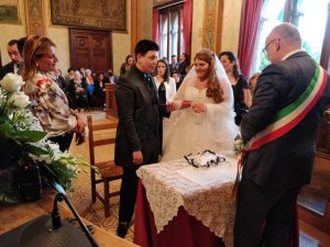 Avezzano – Prima unione civile ad Avezzano. Flavia Bettola e Francesca D’Angelo rispettivamente 24 e 33 anni, si sono giurate amore eterno davanti al primo cittadino, Gabriele De Angelis, e a tanti amici e familiari arrivati in Comune per l’occasione. La sala consiliare è stata addobbata di bianco e di blu con rose e fiori di stagione. Flavia è arrivata davanti al municipio con il papà Flaviano a bordo di un maggiolino blu e ha trovato ad aspettarla Francesca poi lo scambio delle fedi e soprattutto delle promesse tra le due spose, che ormai da quattro anni vivono l’una fianco dell’altra.  Tante sono state le foto ricordo scattate con le spose raggianti con le fedi al dito.