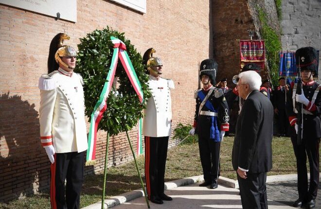 Le commemorazioni si sono aperte con la deposizione di una corona d’alloro da parte del presidente della Repubblica, Sergio Mattarella, alla stele commemorativa che ricorda i caduti per la difesa di Roma e sono proseguite al Parco della Resistenza con la deposizione di una corona d’alloro al Monumento alla memoria dei militari caduti durante la guerra di liberazione.