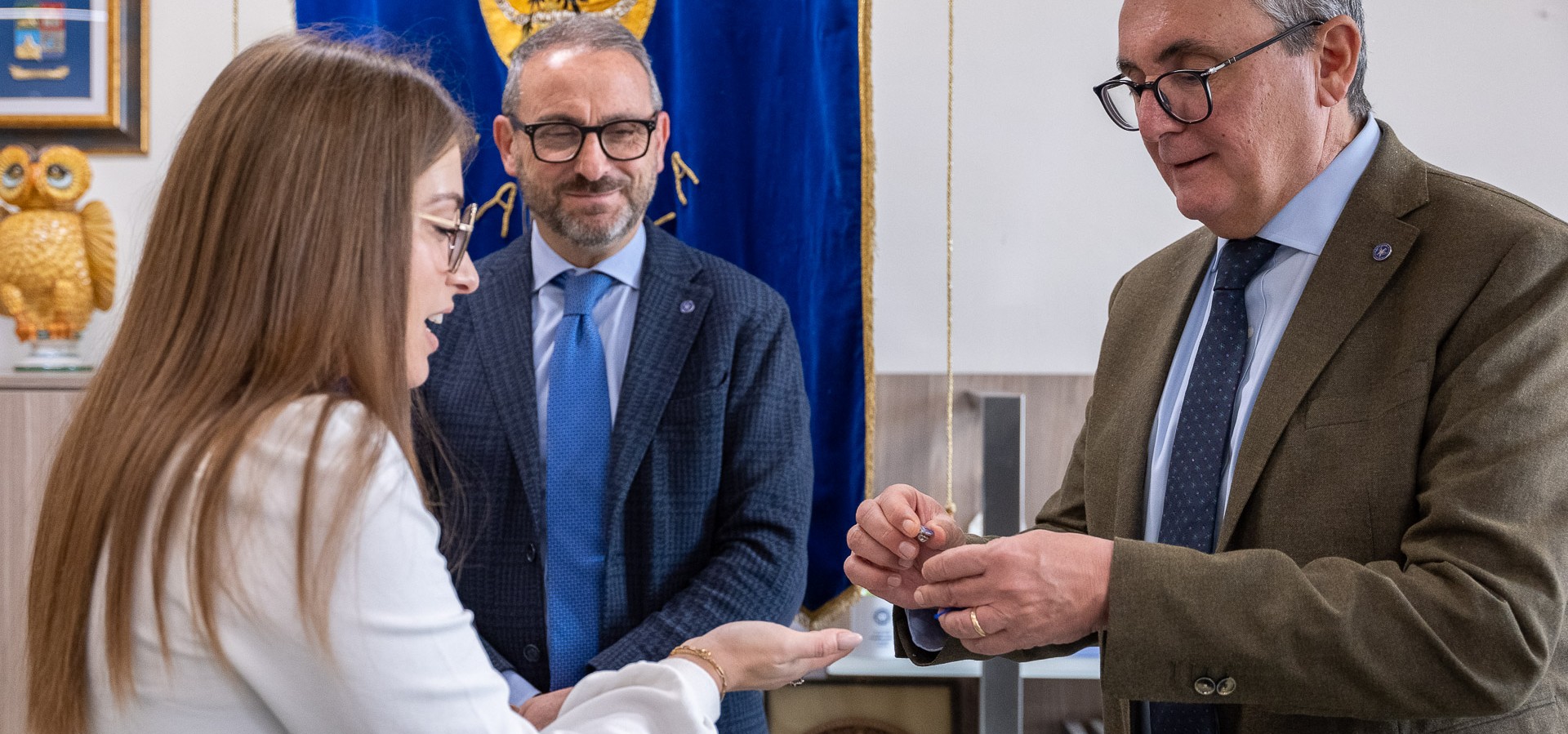 Il Rettore Fabio Graziosi e il Direttore generale Pietro Di Benedetto dell’Università degli Studi dell’Aquila hanno accolto le neoassunte e i neoassunti dando loro il benvenuto con la tradizionale Cerimonia delle spillette tenutasi stamane nella sede del Rettorato.