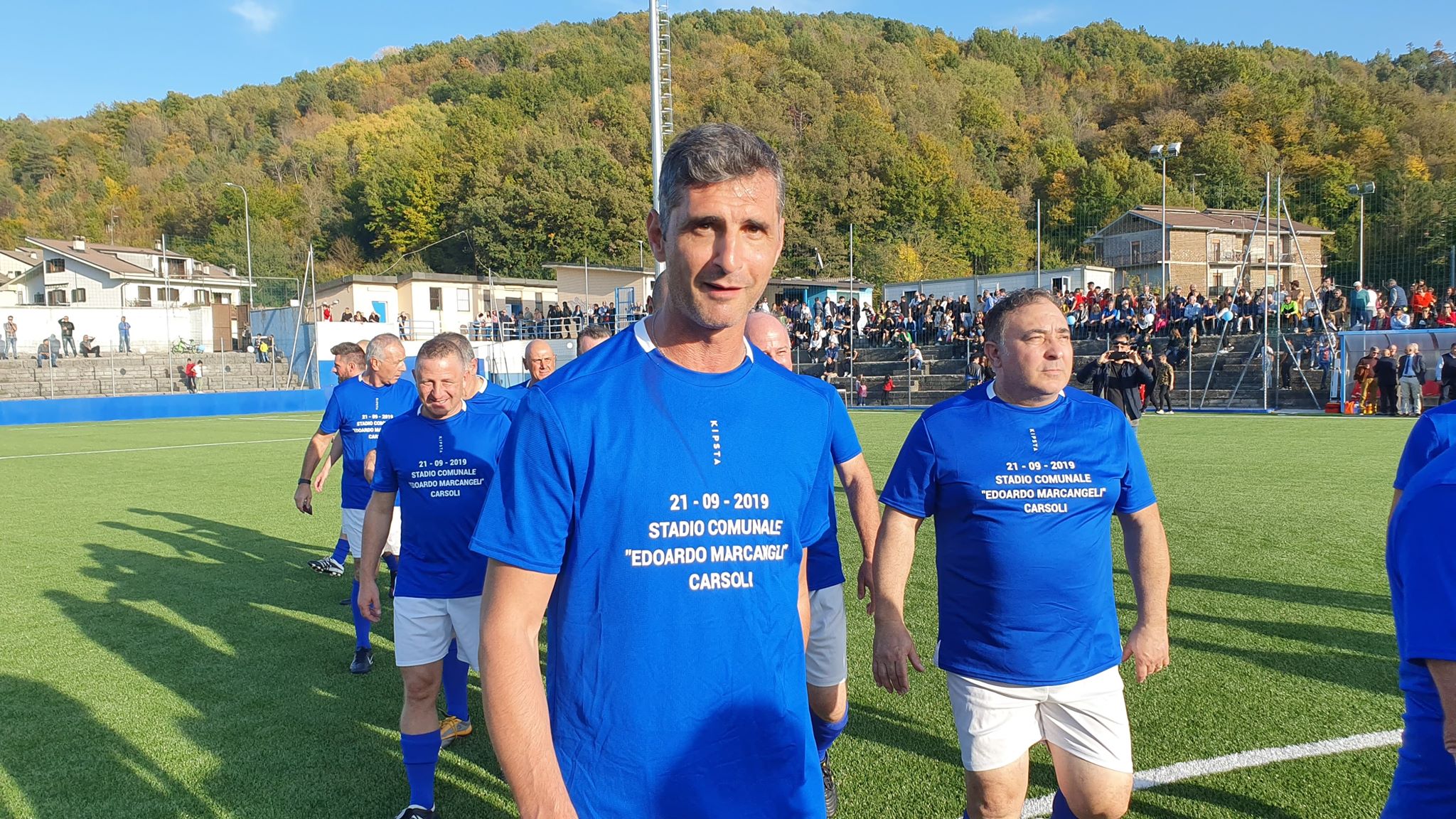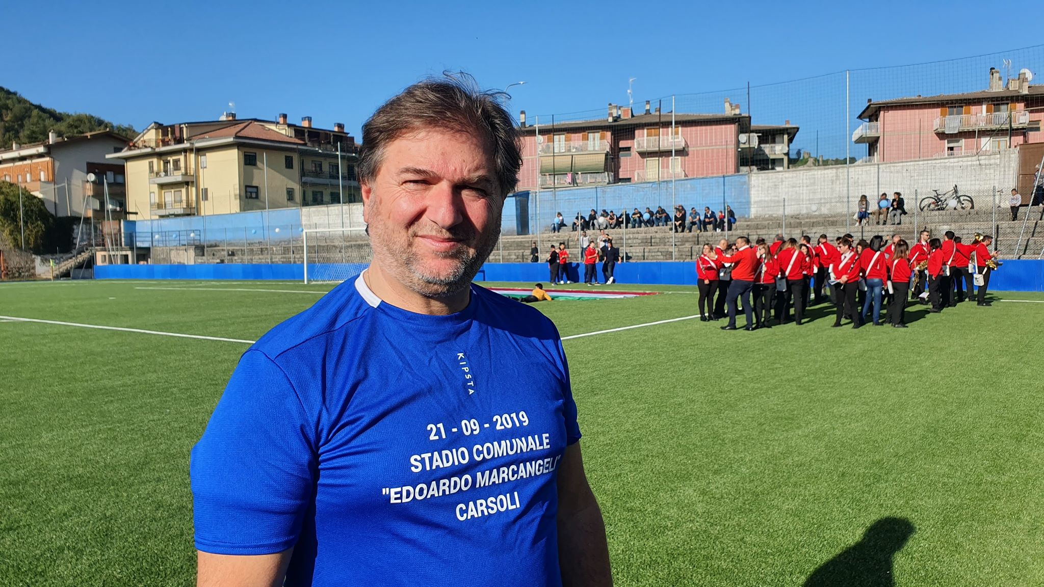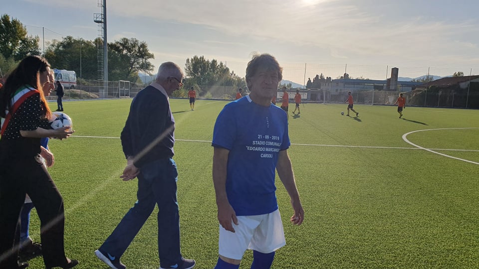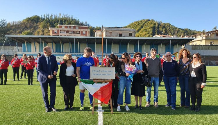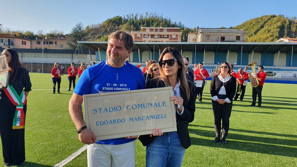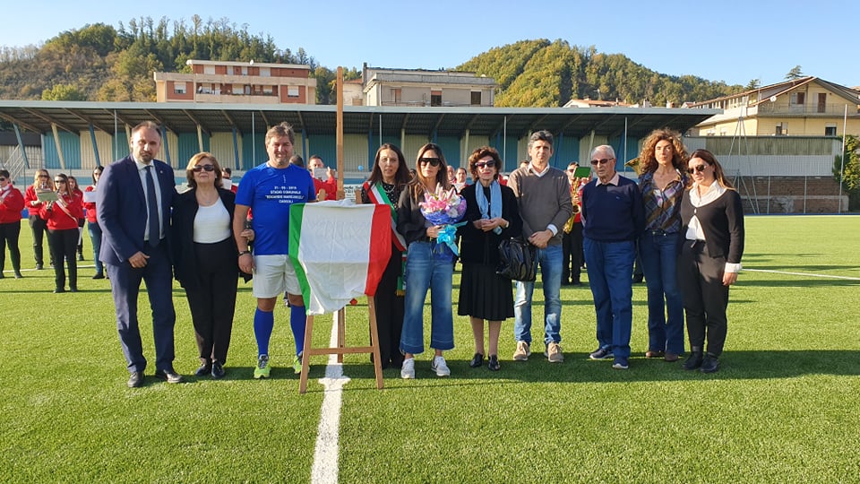 Carsoli – In un clima di grande partecipazione popolare la struttura sportiva rinnovata è stata inaugurata con un passaggio di consegne alla memoria. Da oggi la denominazione ufficiale dello Stadio Comunale è passata da “Cesare De Angelis” a “Edoardo Marcangeli”.