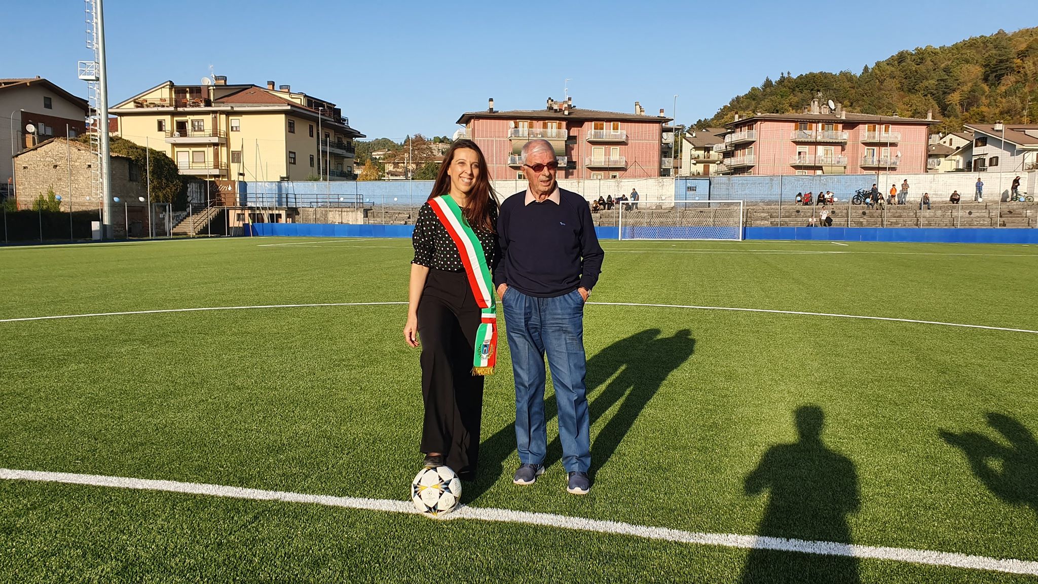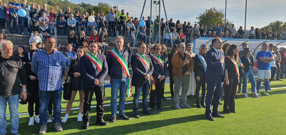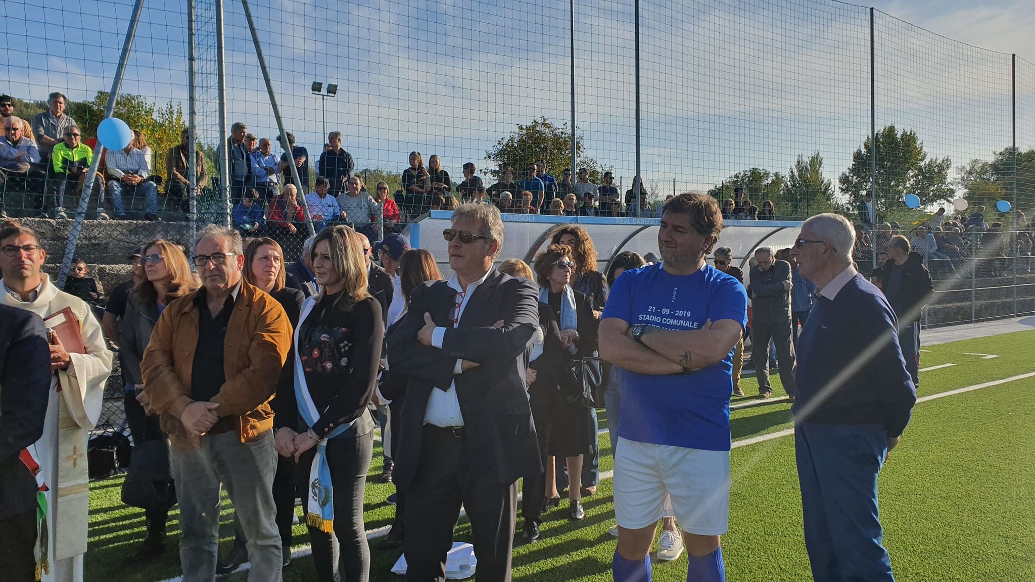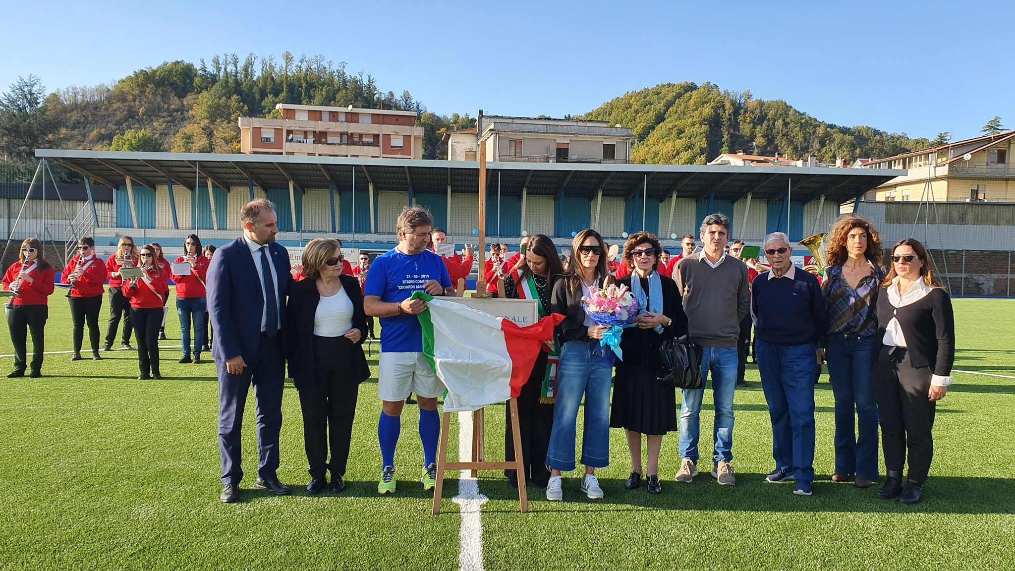 Il calcio d’inizio della prima partita nel nuovo Stadio Comunale “Edoardo Marcangeli” è stato dato dal Sindaco Velia Nazzarro e dal nonno del piccolo Edo: Alberto Marcangeli.