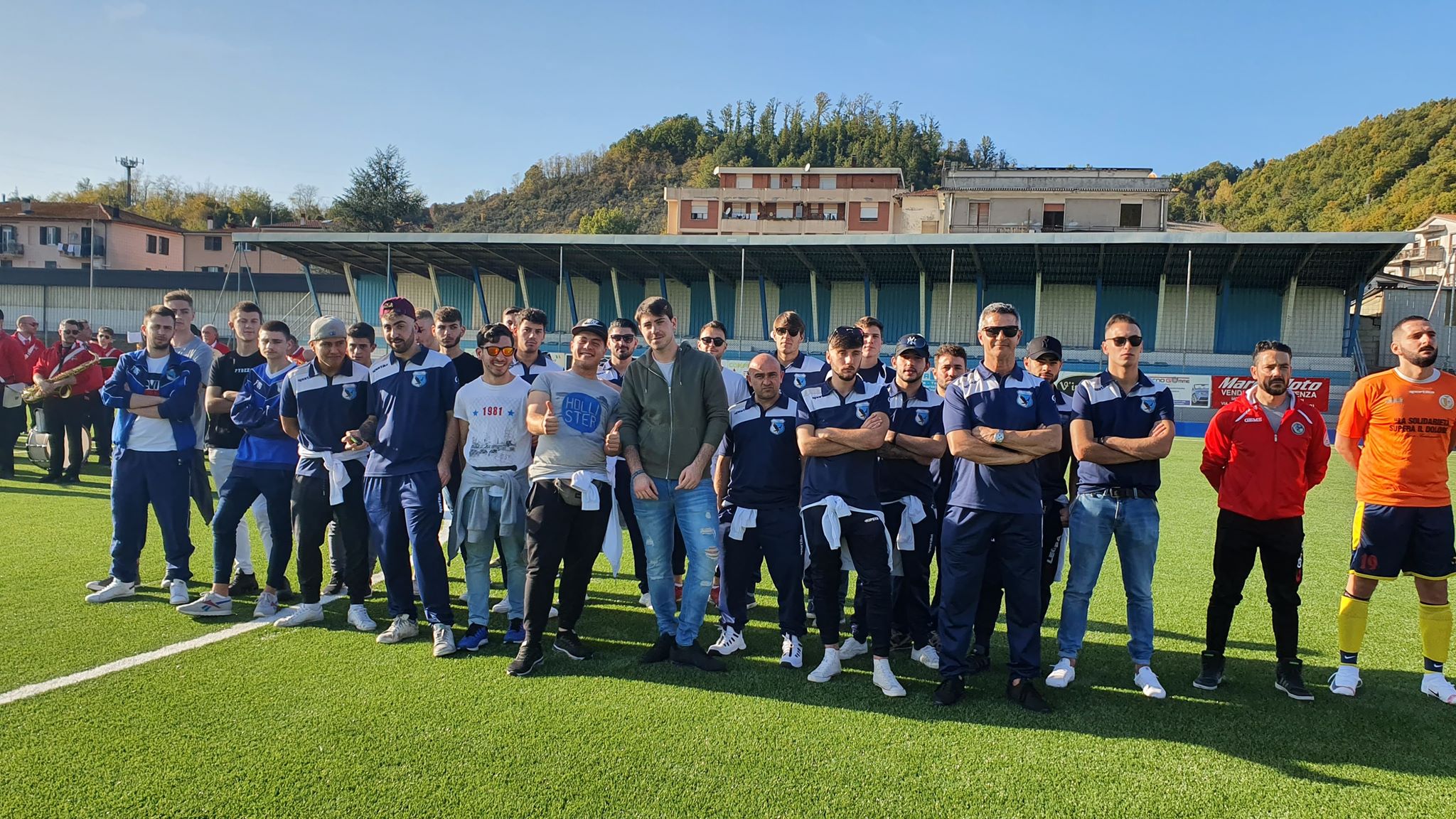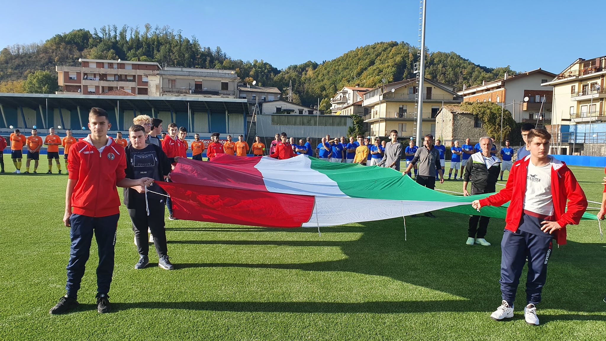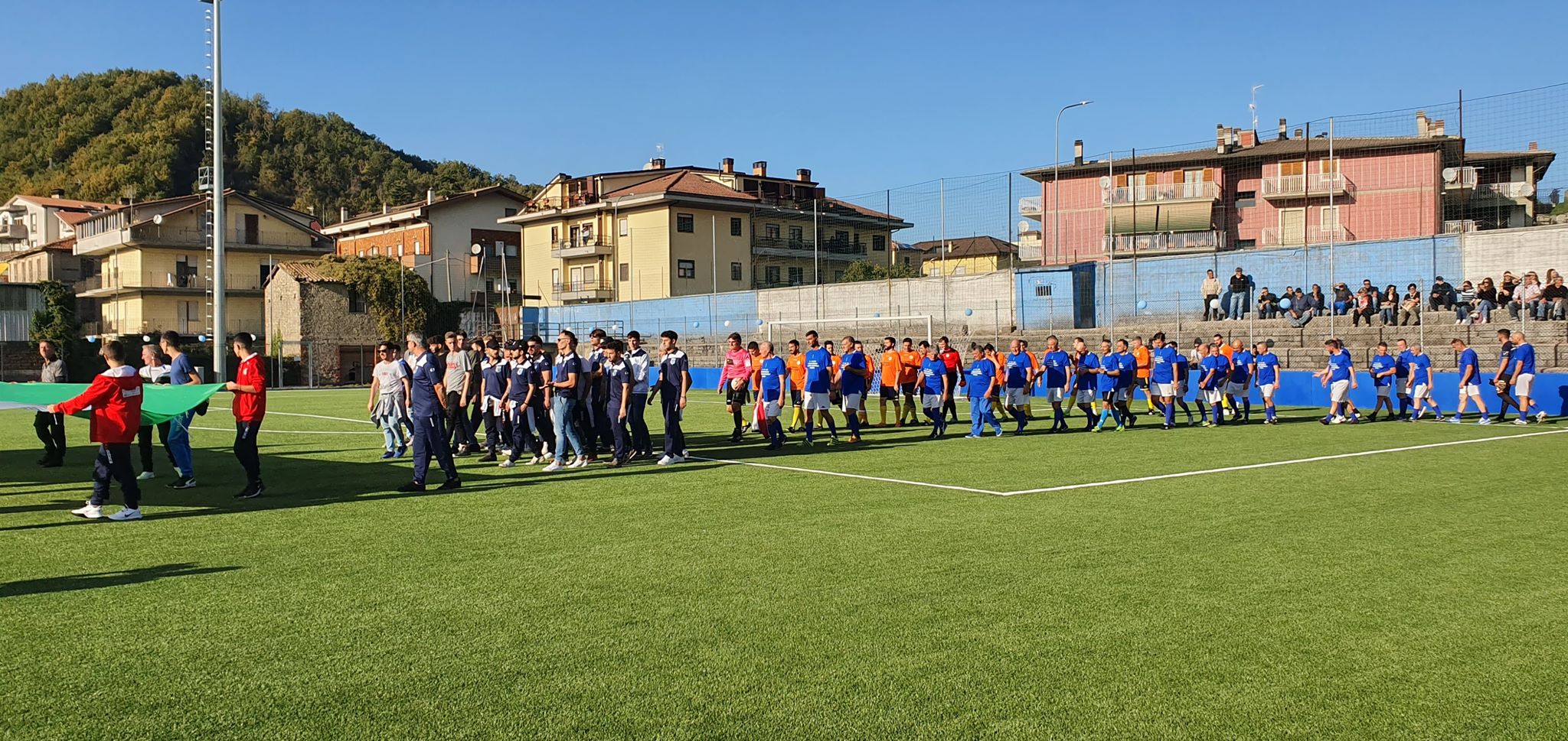 Il calcio d’inizio della prima partita nel nuovo Stadio Comunale “Edoardo Marcangeli” è stato dato dal Sindaco Velia Nazzarro e dal nonno del piccolo Edo: Alberto Marcangeli.